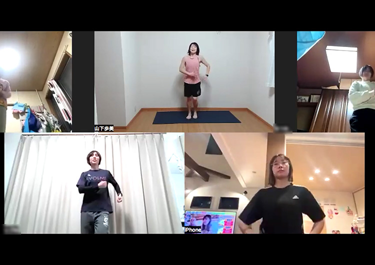 決まった日時にZoomを繋いで、画面越しに一緒にエクササイズ!