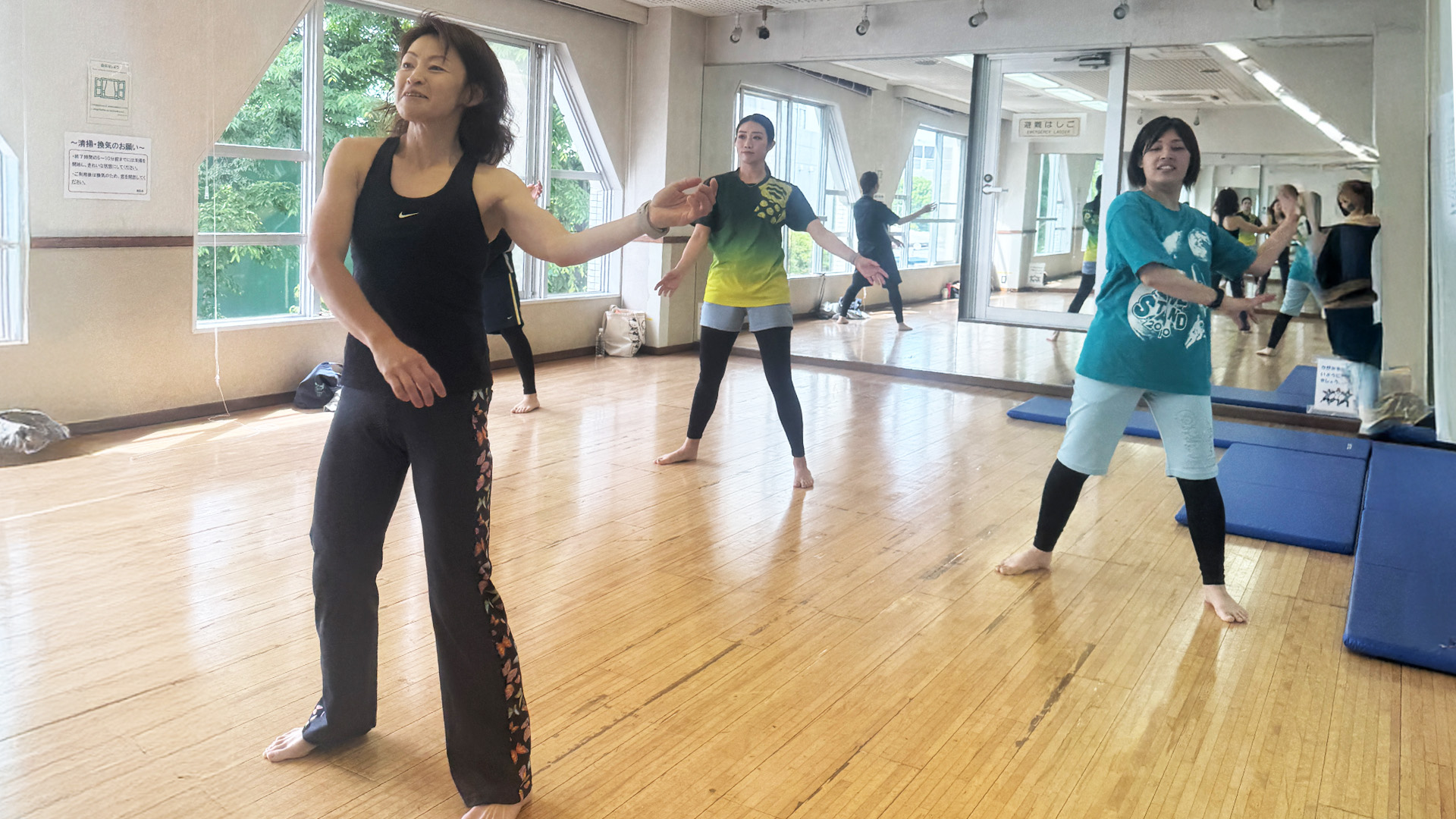 リズムに乗って動くことで、自然と汗が出て、体の内側からもリフレッシュされる内容になっています。